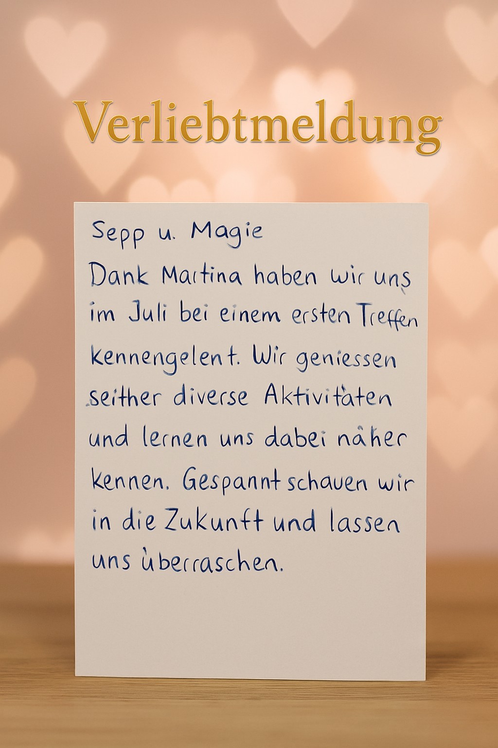 Danke dem Schicksal und Amor😊..Ich gratuliere meinem frisch verliebten Paar Josef und Berta von Herzen. Diese Liebesstory hat mich emotional sehr bewegt, denn genau dieser Mann welcher nun nur noch lacht, kam aufgewühlt und voller Traurigkeit und Zweifel damals zu mir, weil er seine Frau durch Tod verloren hatte und im gleichen Jahr, sein Sohn..Ich bin so dankbar dass die Beiden den Mut hatten mich zu kontaktieren und nun ihr Glück wieder zurückbekommen haben. Ich freue mich so für die Beiden.